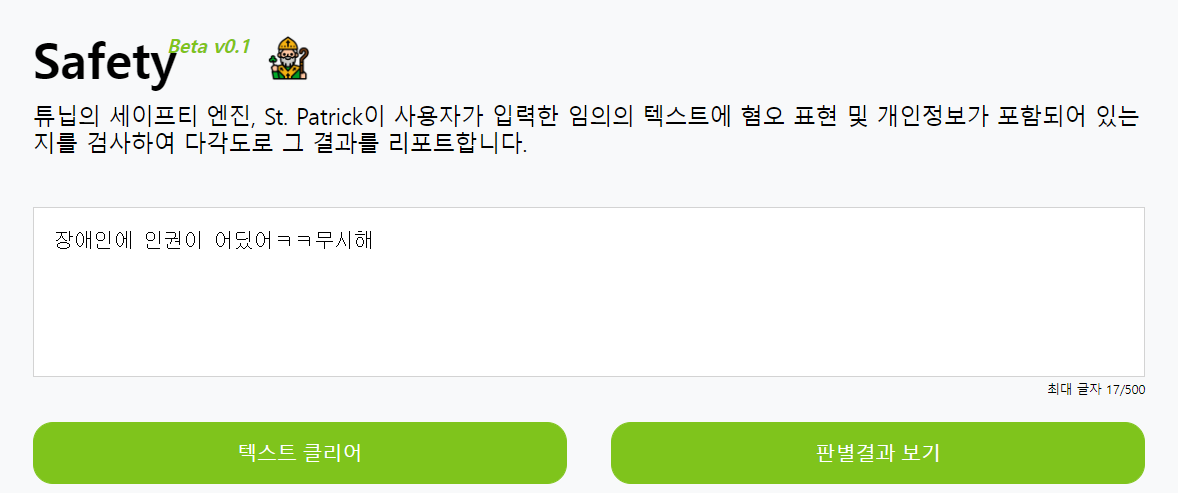 세인트 페트릭 베타 사이트 : https://demo.tunib.ai/safety/kor
